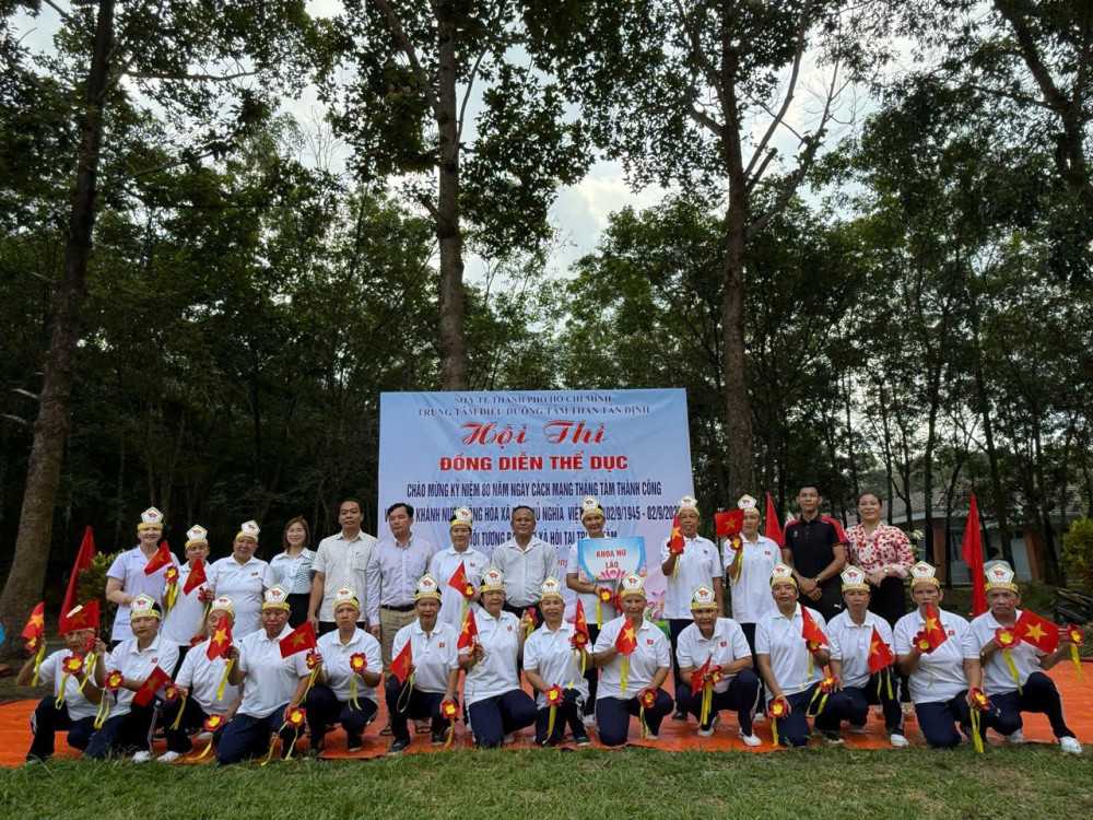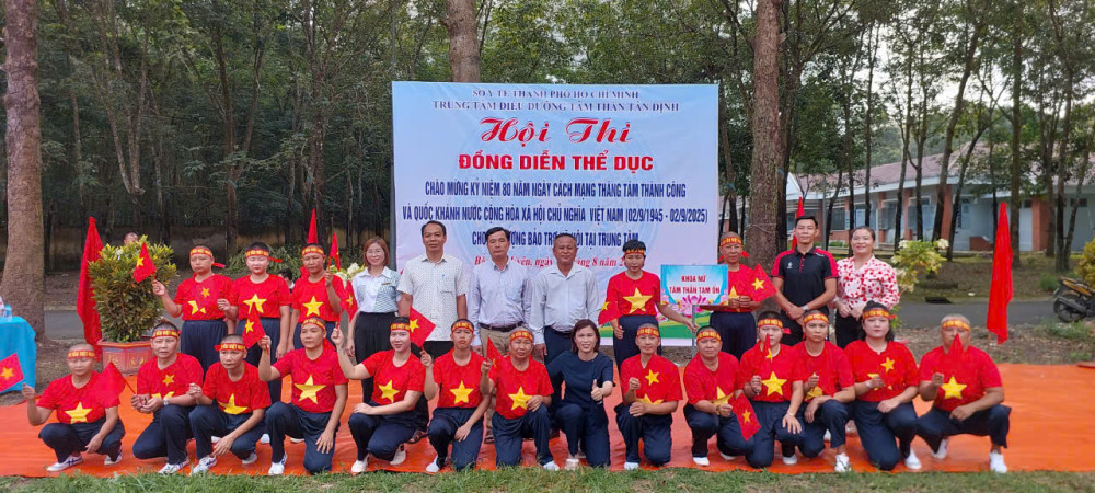 Hòa chung không khí cả nước hân hoan chào mừng kỷ niệm 80 năm ngày cách mạng tháng Tám thành công (19/8/1945-19/8/2025) và Quốc khánh nước Cộng Hòa Xã Hội Chủ Nghĩa Việt Nam (02/9/1945 - 02/9/2025), sáng ngày 20/8/2025, Trung tâm Điều dưỡng tâm thần Tân Định đã long trọng tổ chức Hội thi đồng diễn thể dục tay không dành cho các bệnh nhân đang được chăm sóc và điều trị tại đây. Sự kiện không chỉ là một hoạt động thể dục thể thao nâng cao sức khỏe mà còn là sân chơi bổ ích, thắp lên ngọn lửa của niềm vui, sự lạc quan và tinh thần đoàn kết.