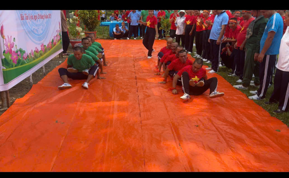 Sau phần thi đồng diễn thể dục tay không, từng đội đã cùng chụp ảnh lưu niệm với Ban Giám đốc Trung tâm và đại diện lãnh đạo các bộ phận, ghi lại những khoảnh khắc đẹp và đáng nhớ. Không khí lễ hội tiếp tục được nối dài với chuỗi các trò chơi dân gian vui nhộn như xếp tháp ly bằng ly giấy, kẹp bóng, chèo thuyền trên cạn... Tiếng cười nói, reo hò cổ vũ đã tạo nên một khung cảnh ấm áp, xóa nhòa đi những ưu phiền, bệnh tật.