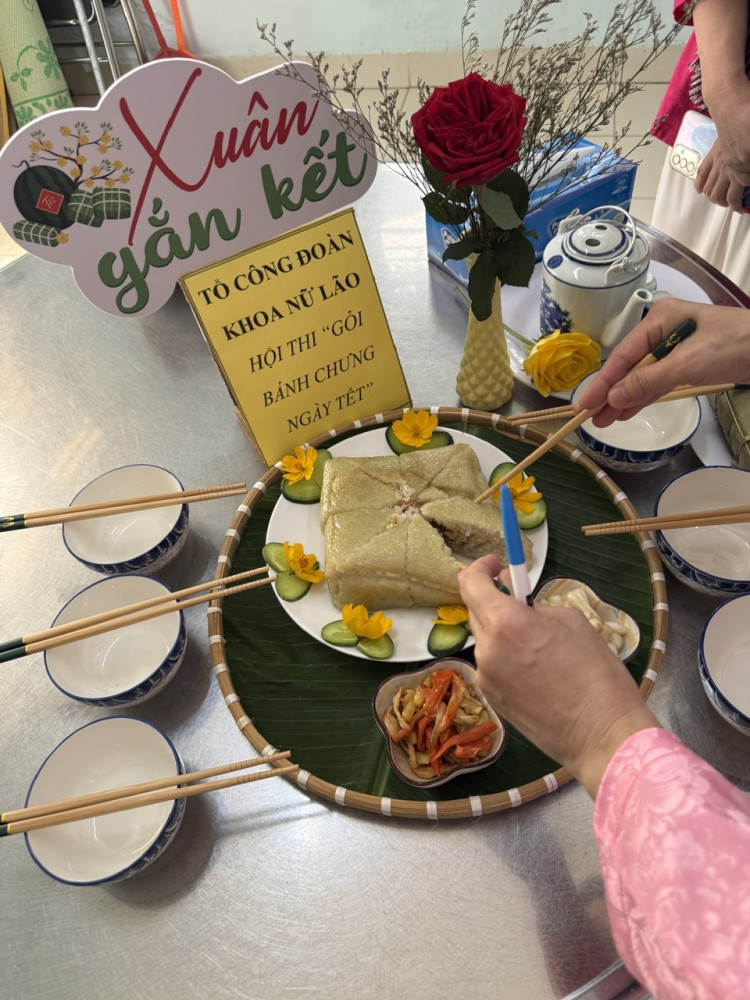 Hội thi là một sáng kiến đầy ý nghĩa của Ban Giám đốc và Công đoàn Trung tâm, với sự tham gia của 12 Tổ công đoàn đến từ các khoa, trạm và khối hành chính. Từ chiều 23 tháng Chạp, Phòng Hậu cần - Sản xuất đã chu đáo phân bổ đầy đủ nguyên liệu đến từng tổ. Gạo nếp cái hoa vàng thơm lừng, đỗ xanh vàng óng, thịt ba chỉ tươi ngon, lá dong xanh mướt và lạt giang mềm mại – tất cả đã sẵn sàng cho một ngày hội ngập tràn yêu thương.