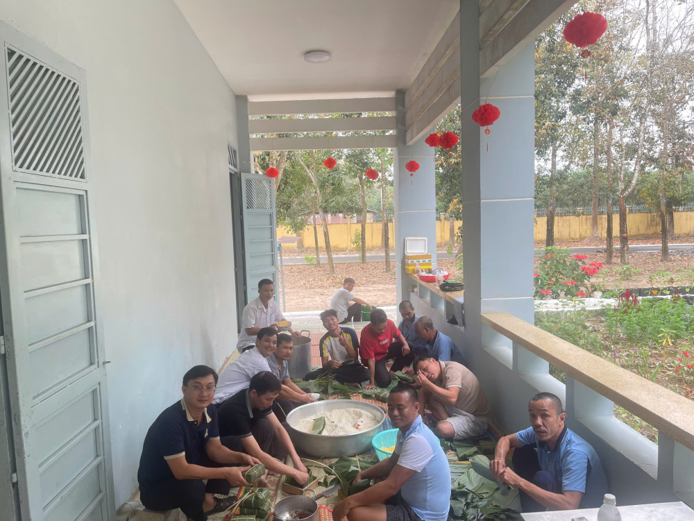 Khác với mọi năm, năm nay các tổ không nấu bánh ngay tại khoa, trạm của mình mà được tập trung về khu vực do Phòng Hậu cần - Sản xuất bố trí nhằm đảm bảo an toàn phòng cháy chữa cháy. Những nồi bánh chưng lớn được bắc lên, khói nghi ngút hòa cùng hơi ấm tỏa ra từ bếp củi, mang đến cảm giác ấm cúng của những ngày Tết cổ truyền đang đến rất gần.