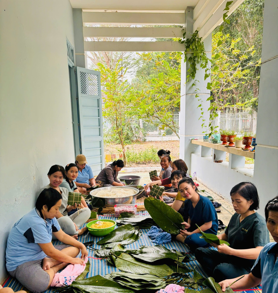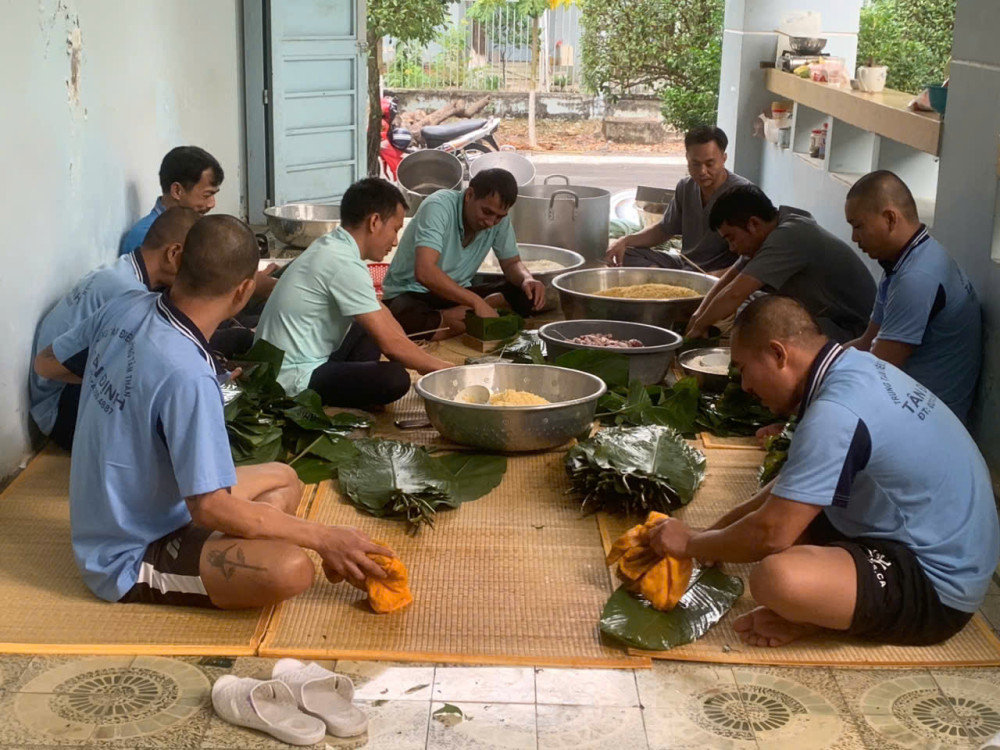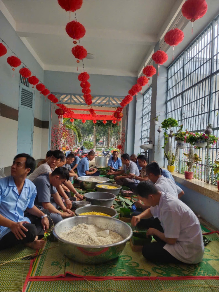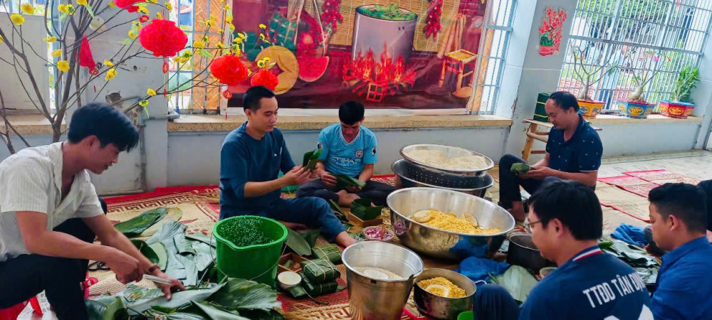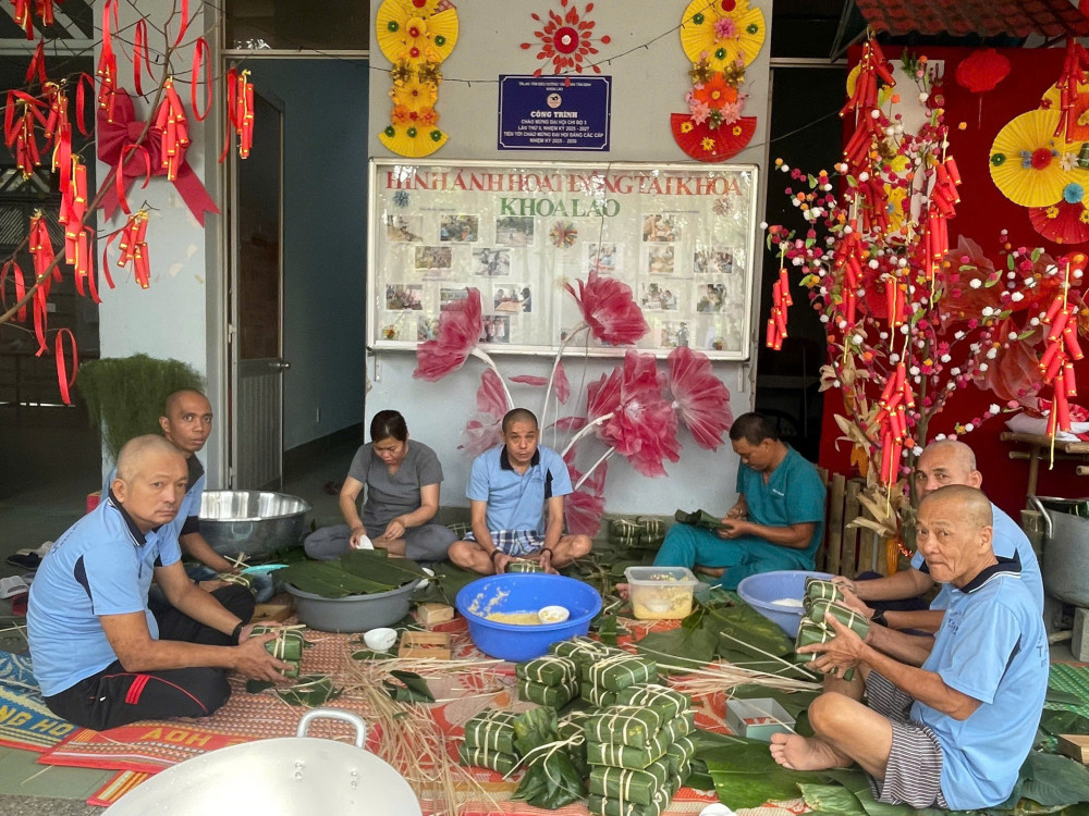 Không khí tất bật và hào hứng hiện rõ trên khuôn mặt của từng thành viên các tổ. Mỗi người một việc, người vo gạo, người rửa lá, người xào nhân, người thì thoăn thoắt gói bánh. Điều đặc biệt, các bệnh nhân của Trung tâm cũng được cùng tham gia vào các công đoạn phù hợp, tạo nên một không gian sẻ chia đầy ý nghĩa. Tiếng cười nói, những lời động viên, những bàn tay cùng nhau góp sức, dường như đã xóa nhòa mọi khoảng cách, chỉ còn lại tình người ấm áp.