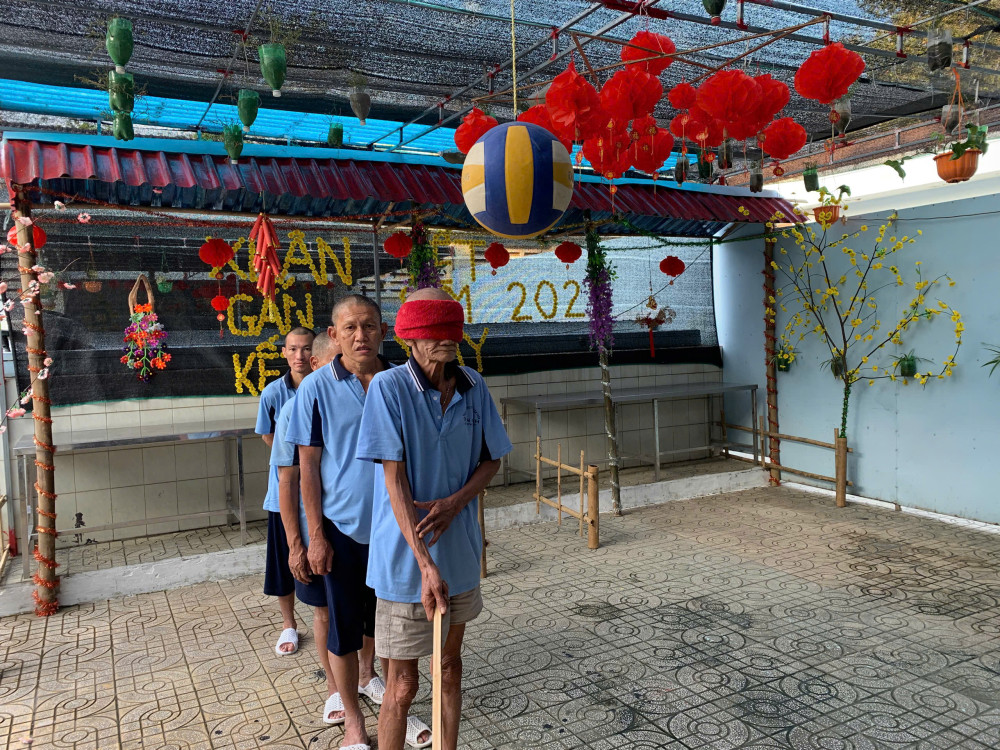 [Bệnh nhân tại khoa Lao tham gia trò chơi bịt mắt đánh bóng]