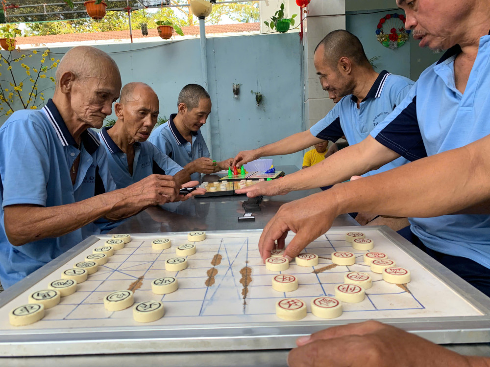 [Các bệnh nhân khoa Nam lão đang tham gia trò chơi cờ cá ngựa]