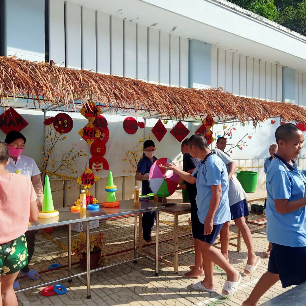 [Một góc nhỏ của các gian hàng trò chơi, với sự tham gia của các bệnh nhân khoa Nam tâm thần tạm ổn]