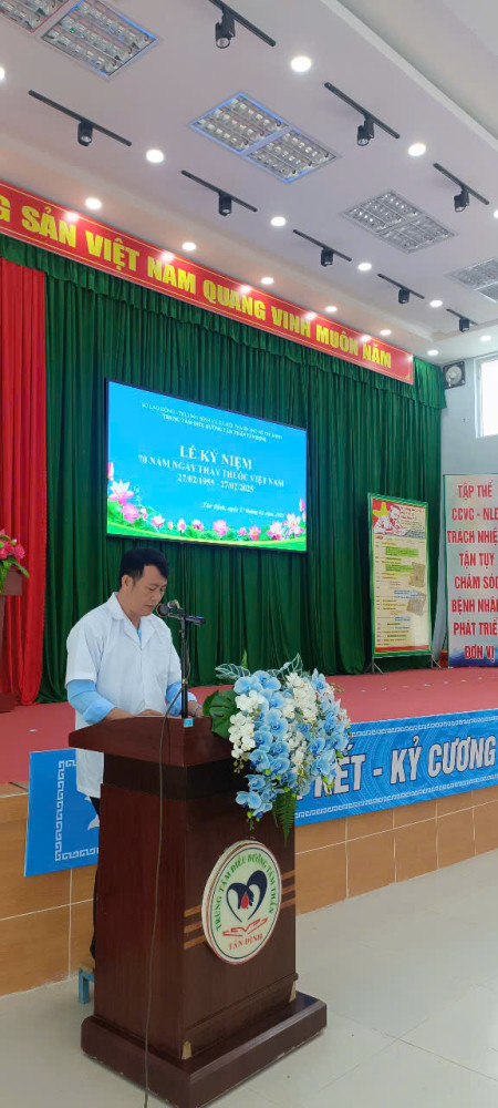 Tân Định, ngày 27/2/2025 – Sáng nay, không khí trang trọng và xúc động bao trùm Trung tâm điều dưỡng tâm thần Tân Định nhân dịp kỷ niệm 70 năm Ngày Thầy thuốc Việt Nam (27/2/1955 – 27/2/2025). Buổi lễ đã quy tụ đông đảo cán bộ, nhân viên y tế của Trung tâm, cùng sự hiện diện của đồng chí Lư Nguyễn Minh Tuấn - Bí thư Đảng ủy, Giám đốc Trung tâm.