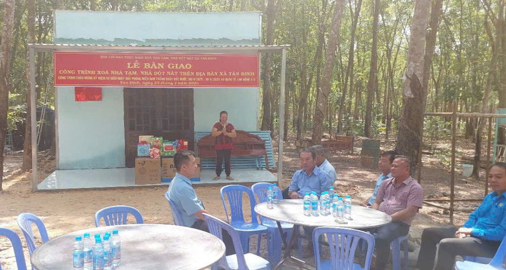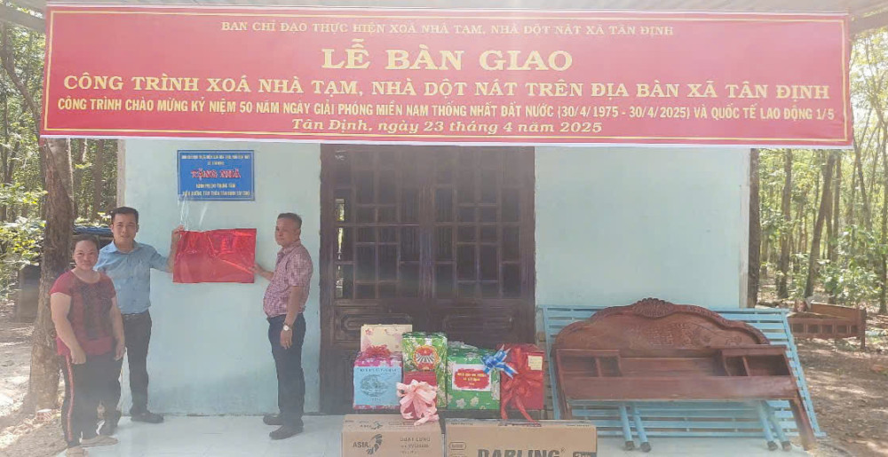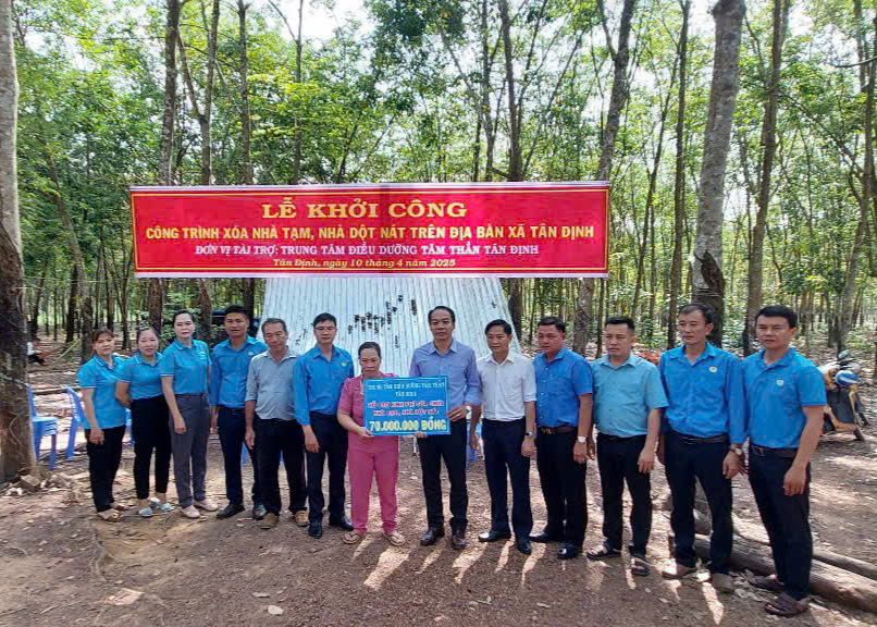 Nhân kỷ niệm 50 năm giải phóng miền Nam, thống nhất đất nước, hưởng ứng lời kêu gọi của Chính phủ về phong trào thi đua “Chung tay xóa nhà tạm, nhà dột nát trên phạm vi cả nước trong năm 2025”, Trung tâm Điều dưỡng tâm thần Tân Định đã có một nghĩa cử cao đẹp, thể hiện tinh thần tương thân tương ái của dân tộc. Trung tâm đã đóng góp hơn 70 triệu đồng để cùng địa phương xây dựng một ngôi nhà cho bà Trần Thị Bích Trâm, một hộ gia đình khó khăn về nhà ở tại đường TĐ 70, Tổ 22, ấp Vườn Ươm, xã Tân Định.