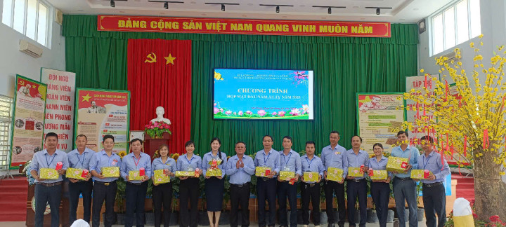 (Đội thi Khoa Nữ lão chụp ảnh lưu niệm với Ban Giám đốc và đại diện các bộ phận)