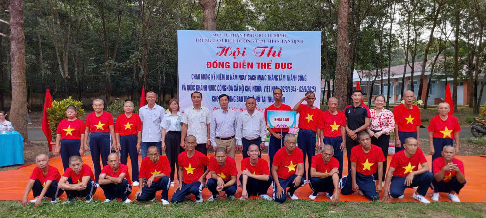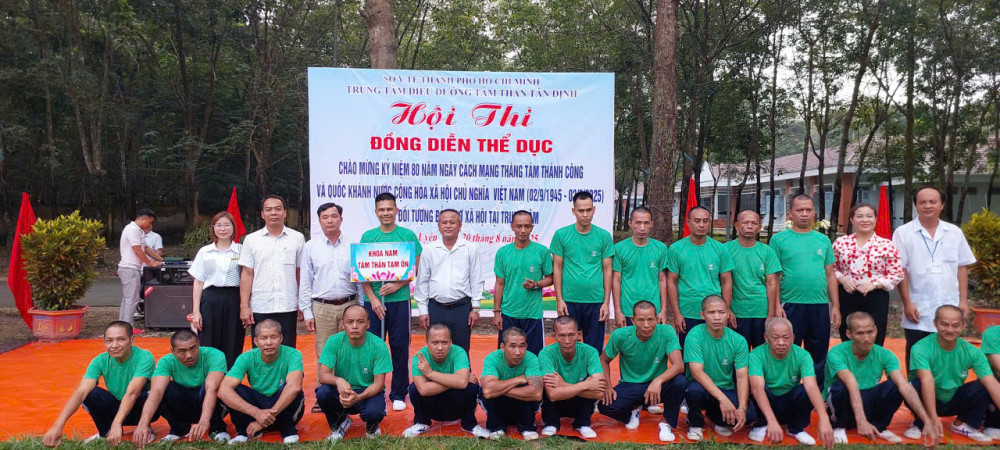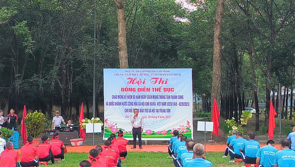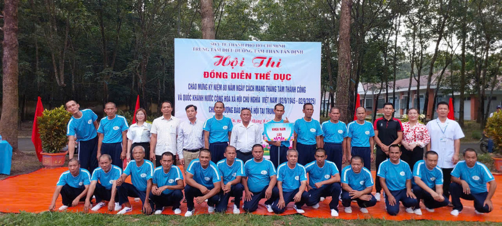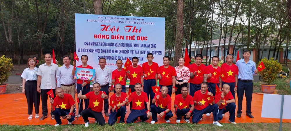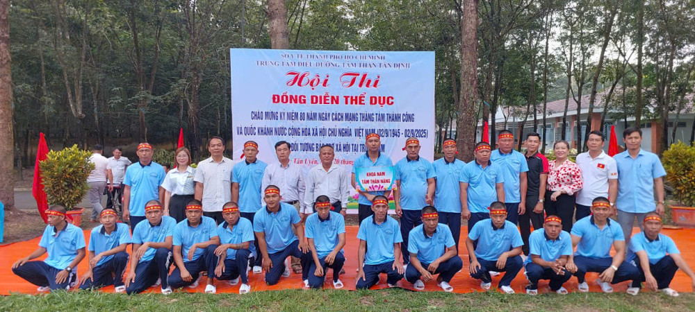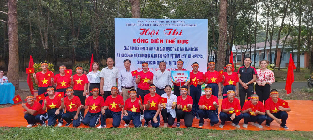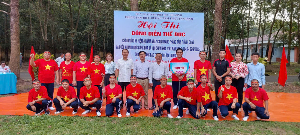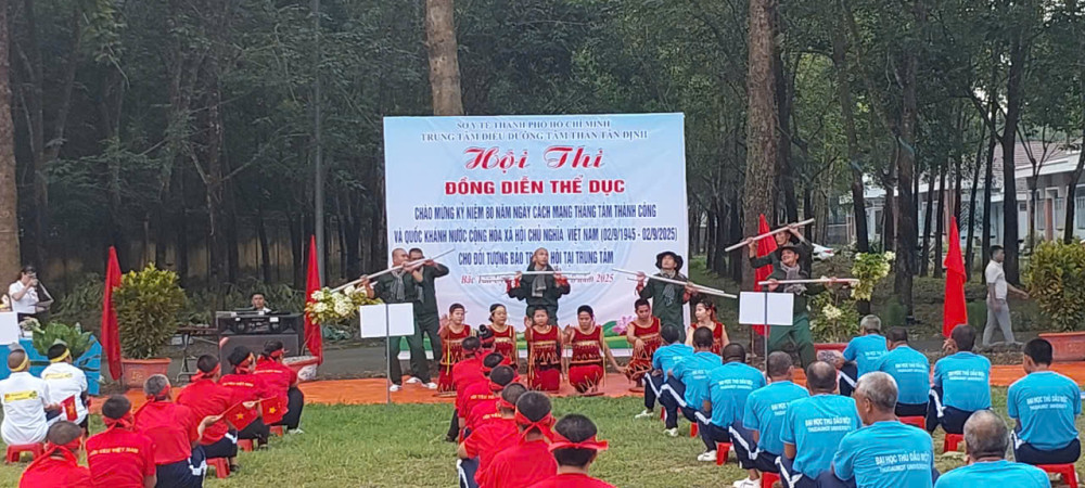 Hòa chung không khí cả nước hân hoan chào mừng kỷ niệm 80 năm ngày cách mạng tháng Tám thành công (19/8/1945-19/8/2025) và Quốc khánh nước Cộng Hòa Xã Hội Chủ Nghĩa Việt Nam (02/9/1945 - 02/9/2025), sáng ngày 20/8/2025, Trung tâm Điều dưỡng tâm thần Tân Định đã long trọng tổ chức Hội thi đồng diễn thể dục tay không dành cho các bệnh nhân đang được chăm sóc và điều trị tại đây. Sự kiện không chỉ là một hoạt động thể dục thể thao nâng cao sức khỏe mà còn là sân chơi bổ ích, thắp lên ngọn lửa của niềm vui, sự lạc quan và tinh thần đoàn kết.
