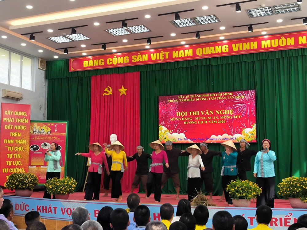 Nhằm thiết thực chào mừng Đại hội đại biểu toàn quốc lần thứ XIV của Đảng, mừng Tết Dương lịch năm 2026, Trung tâm Điều dưỡng tâm thần Tân Định đã tổ chức nhiều hoạt động văn hóa, thể thao ý nghĩa, góp phần chăm lo đời sống tinh thần cho các đối tượng bảo trợ xã hội đang điều trị tại Trung tâm.