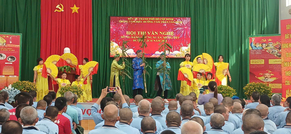 Tiếp nối các hoạt động thể thao, ngày 30/12/2025, Trung tâm tổ chức Hội thi Văn nghệ kết hợp Lễ tổng kết và trao giải các môn bóng đá, bóng chuyền. Hội thi thu hút sự tham gia của tất cả các khoa bệnh với nhiều tiết mục đặc sắc, phong phú như đơn ca, song ca, tốp ca và múa, tạo không khí phấn khởi, ấm áp cho bệnh nhân, viên chức trong toàn Trung tâm.