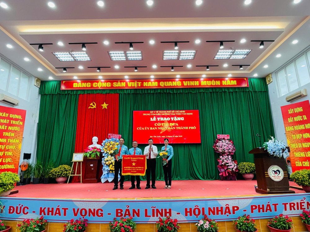 (Tập thể Trung tâm vinh dự được nhận Cờ thi đua của UBND thành phố)