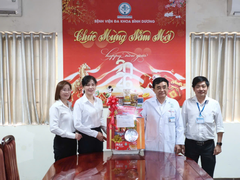 Bà Trần Thị Phương Thúy – Phó Giám đốc cùng đoàn đến tham và chúc tết tại Bệnh viện Bình Dương