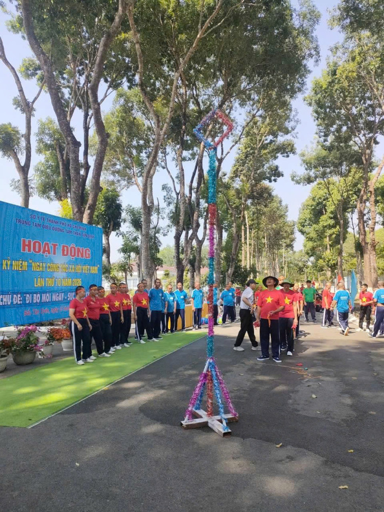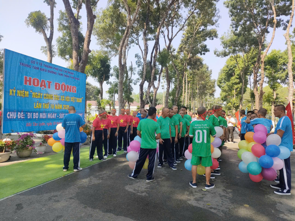 Điểm nhấn của chương trình là hoạt động đi bộ với chủ đề “Đi bộ mỗi ngày – sức khỏe trong tầm tay”. 180 viên chức và người bệnh đã cùng nhau sải bước trên lộ trình rợp bóng cây xanh trong khuôn viên Trung tâm. Không có khoảng cách giữa “người chăm sóc” và “người được chăm sóc”, chỉ còn lại những cái nắm tay, những lời động viên chân tình.